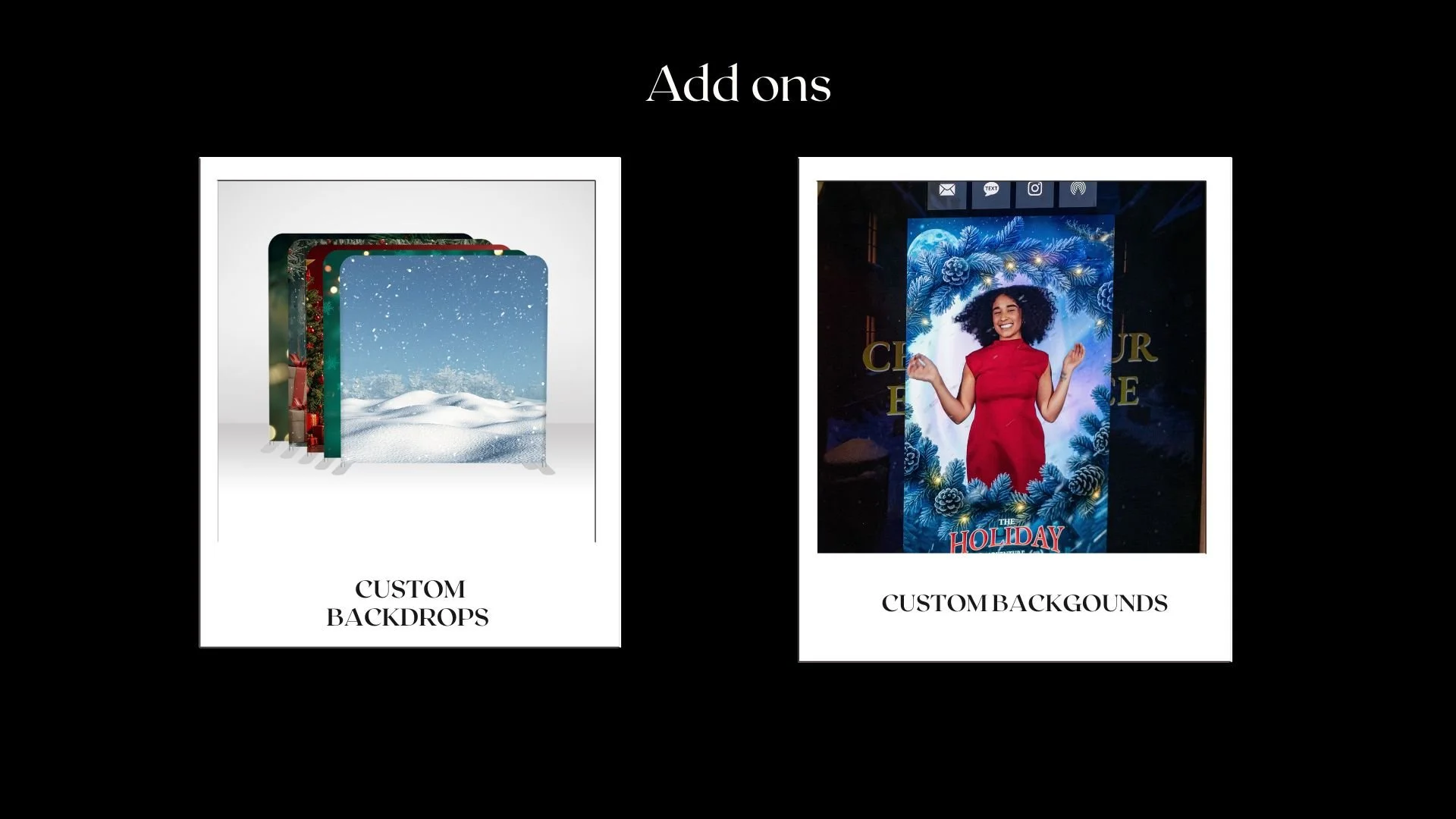 Elevate your Holiday party with our interactive Photo Booth! From classic prints to custom backdrops and green screen holiday scenes, plus fun photo keychains that will have everyone talking.